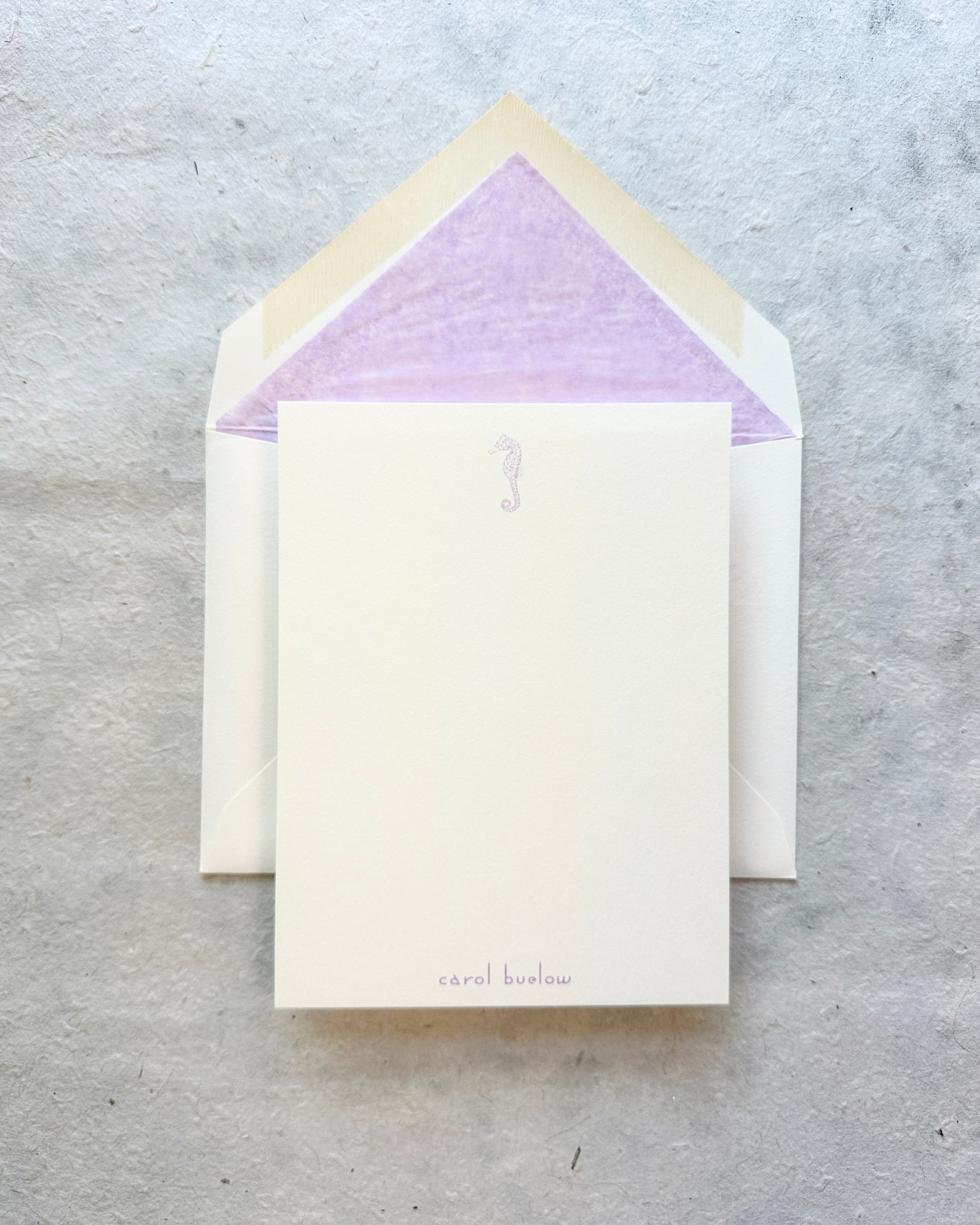Classic fine stationery with raised thermography print and lined envelopes. 165# card stock #3 (4x6") size. Please include your personalization details in the special instructions section. Typestyles, design, print color, and liner will be as shown.