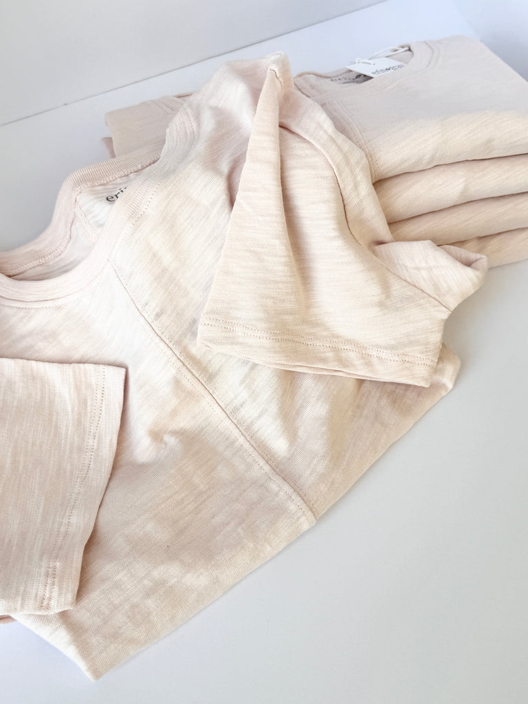 Made from 100% Pima Cotton Slub fabric, it’s soft, opaque, pre-shrunk, and tagless. Made in Peru.
