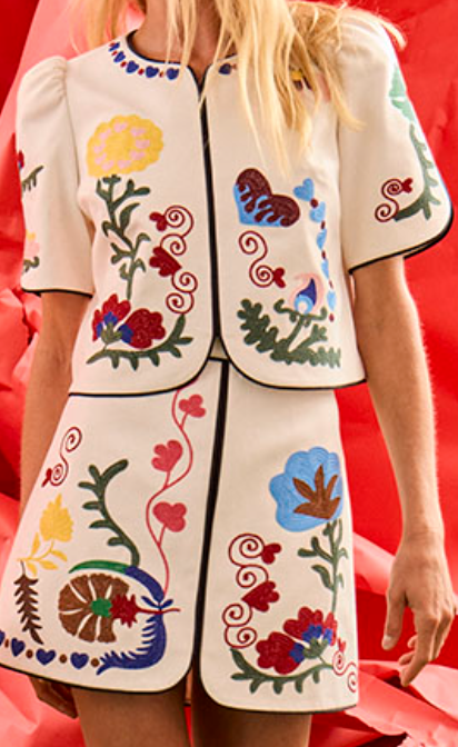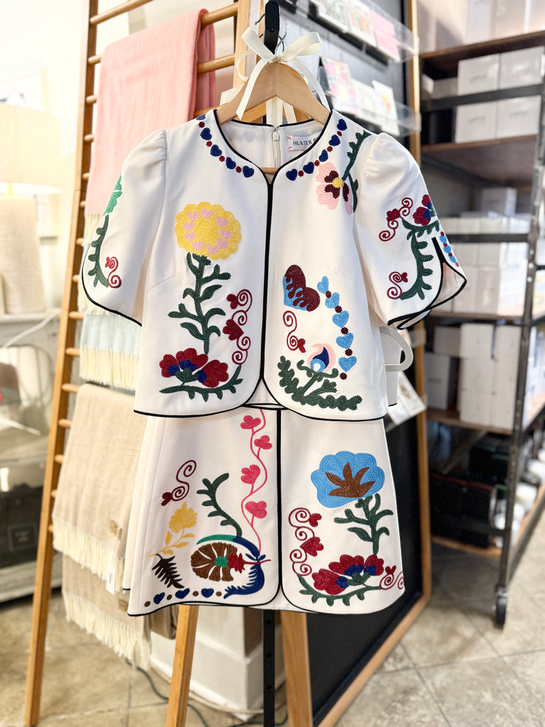Designed as the perfect match to the Beeson Top, the Dottie Mini Skirt brings vintage-inspired whimsy to a modern silhouette. Featuring a flattering A-line shape, fitted waist, and back zipper closure, this style is all about charm and ease. The tulip hem adds a soft, feminine touch, accentuated by the Stitchtopia print. Wear it as a set with the Beeson Top or with your favorite top for a playful twist.