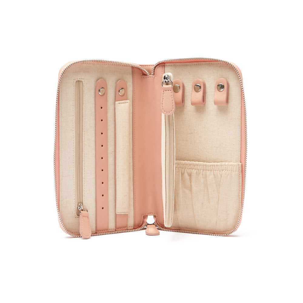 Keep your jewelry organized and protected in our “Travel Jewelry Wallet” made from premium vegan leather, with Cream linen lining Interior. Enough room for all your favorite jewelry and includes compartments for on-the-go getting-ready moments.